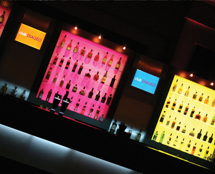A Worldwide conference for Diageo to showcase it’s oustanding collection of global, local and reserve brands. A verstaile main presentation set was produced and 10 individual brand specific environments created with sets, imagery and asset displays. Stylish yet functional custom built bars and back bars were crafted to support all venues visited during the 3 city programme.