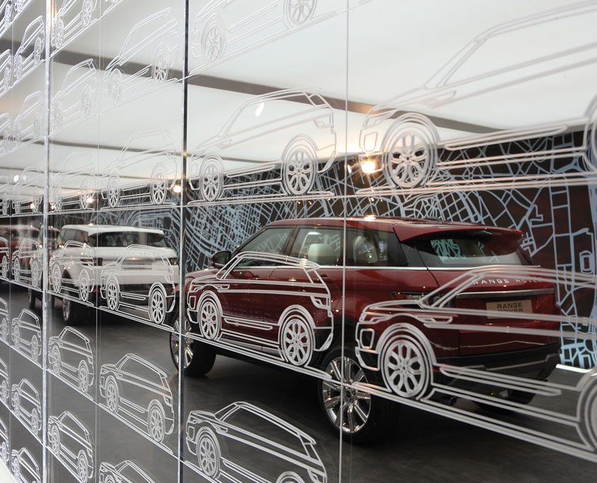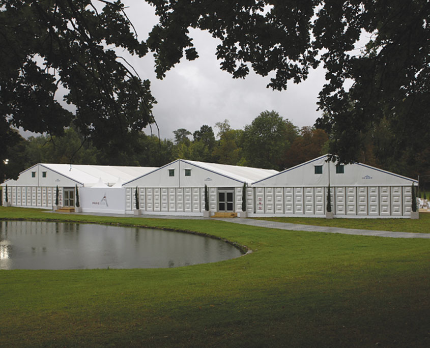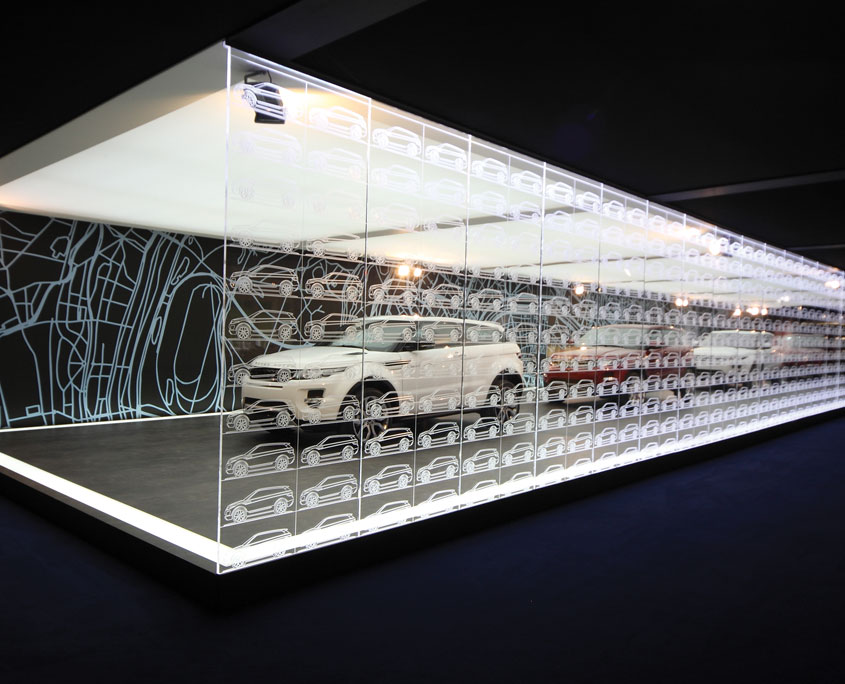 Jaguar Land Rover chose Paris to reveal the Range Rover Evoque to their Worldwide dealer network. A bespoke presentation suite was installed at the Musée D’Orsay on the left bank of the Seine, and three large air conditioned marquees were fitted out at Château de Groussay with a viewing gallery housing a 30m long engraved acrylic wall, 4 breakout rooms, briefing area, 525m2 dining room, kitchen and a 175m2 external decking area.